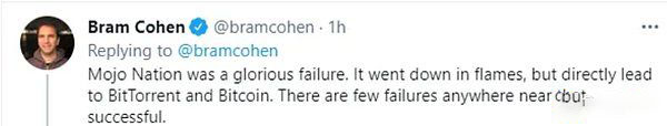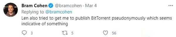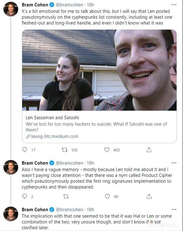 布拉姆·科恩(bram cohen)对本文的回应,暗示他和哈尔·芬尼可能曾以假名合作