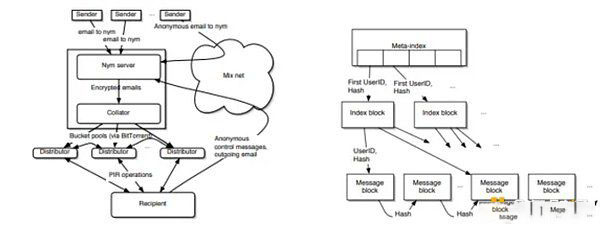 早期的邮件转发程序只是在转发信息的同时隐藏发件人的身份,而后来的协议(如 mixmaster,最流行的邮件转发程序)则依靠分散节点在 p2p 网络上分发固定大小的加密信息块。比特币的架构与邮件转发程序非常相似,尽管其节点传输的是交易数据而不是消息。1997 年,加密无政府主义者创始人 tim may 甚至提出了一种基于邮件转发程序的数字货币。