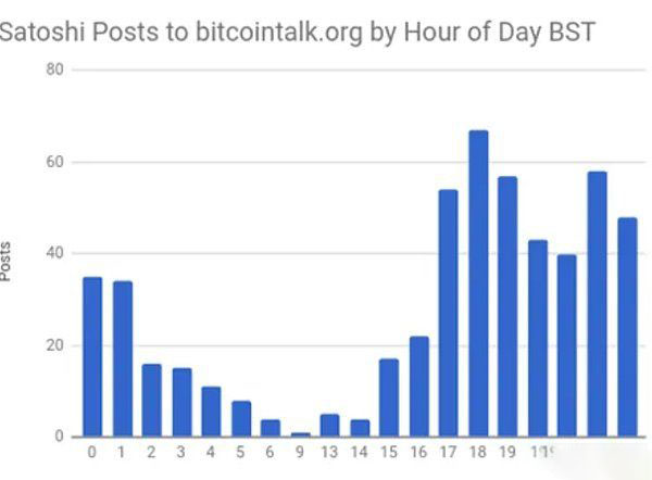 - 假设 satoshi 过着与比特币无关的生活,那么他在工作或学习期间大部分时间都不在家里的电脑前工作……如果 satoshi 生活在 bst 时区,那么他大部分时间都在晚上工作,经常工作到凌晨