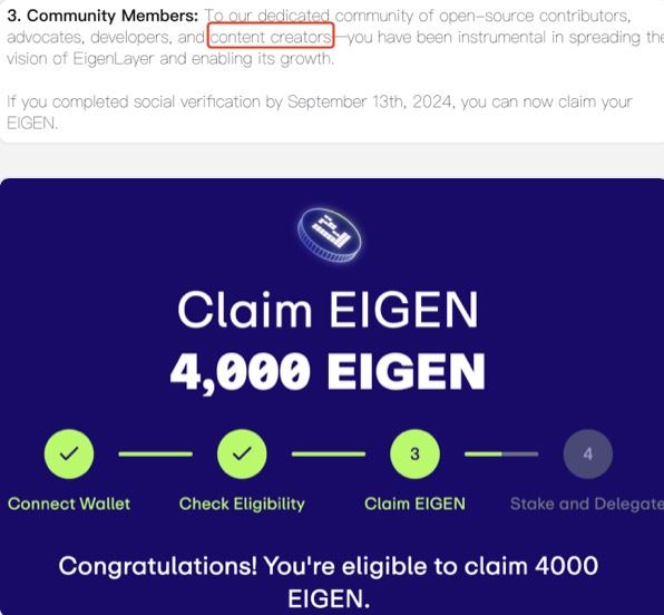 我是如何靠内容创作而获得4000个eigenlayer代币空投的?