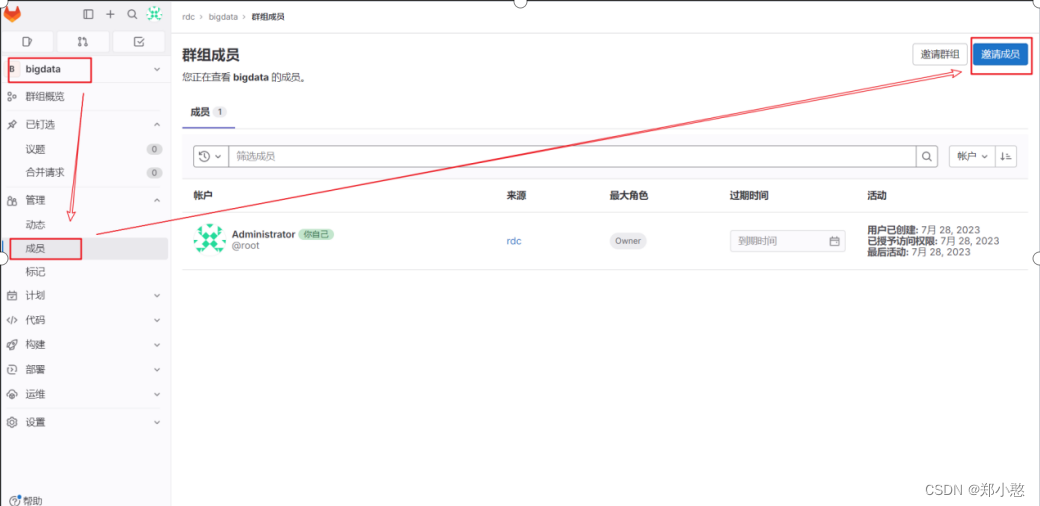 在gitlab里,可以创建出组、组下的子组。在小公司里可以看见gitlab里边会创建出后端,大数据等等一系列组。
