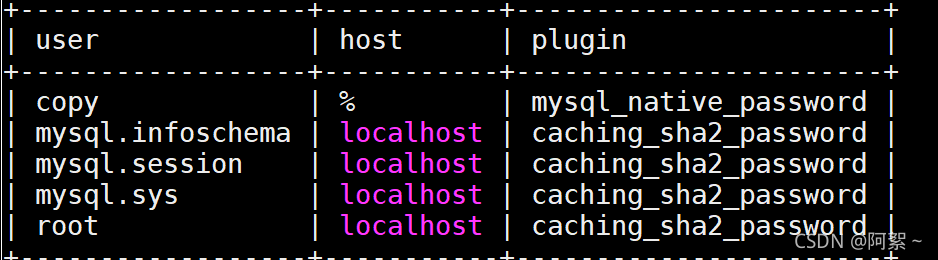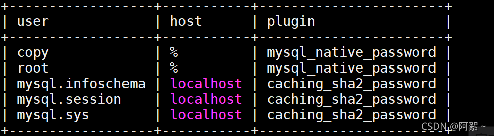 查询用户密码命令:select host,user,authentication_string from mysql.user