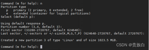 #fdisk /dev/vda m //查看帮助 n //新建分区
