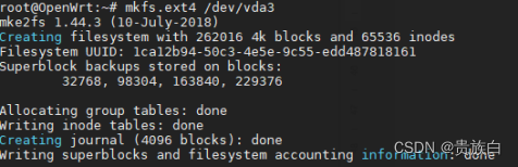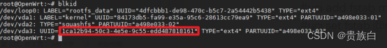 #uci add fstab mount #uci set fstab.@mount[-1].uuid=uuid //uuid改为上面拷贝的内容 #uci set fstab.@mount[-1].options=rw,sync,noatime #uci set fstab.@mount[-1].fstype=ext4 #uci set fstab.@mount[-1].enabled_fsck=1 #uci set fstab.@mount[-1].enabled=1 #uci set fstab.@mount[-1].target=/ #uci set fstab.@mount[-1].device=/dev/vda3 #uci commit fstab