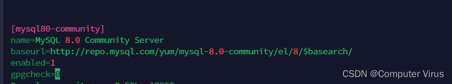 [mysql80-community] name=mysql 8.0 community server baseurl=http://repo.mysql.com/yum/mysql-8.0-community/el/8/$basearch/ enabled=1 gpgcheck=0