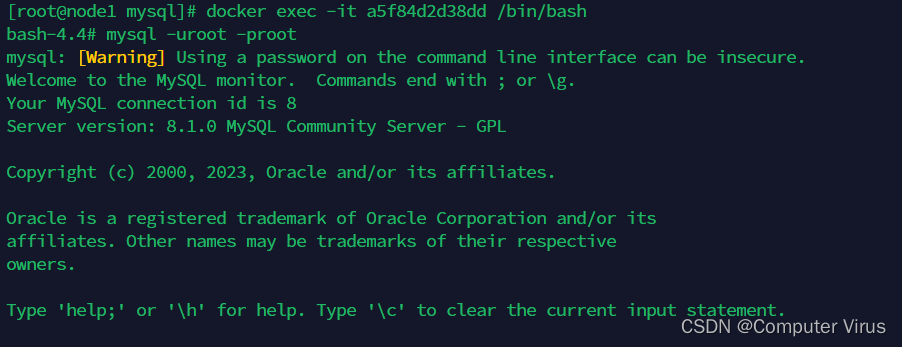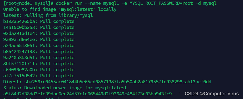 docker run --name mysql1 -e mysql_root_password=root -d mysql