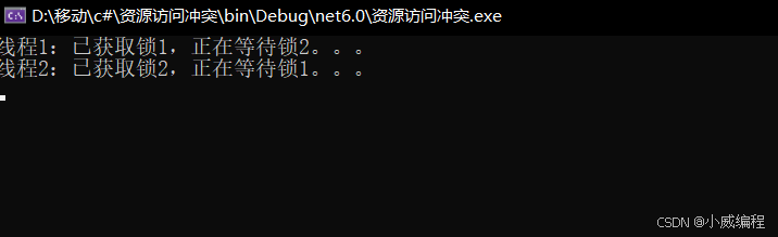 console.writeline("线程1:已获取锁1,正在等待锁2。。。");