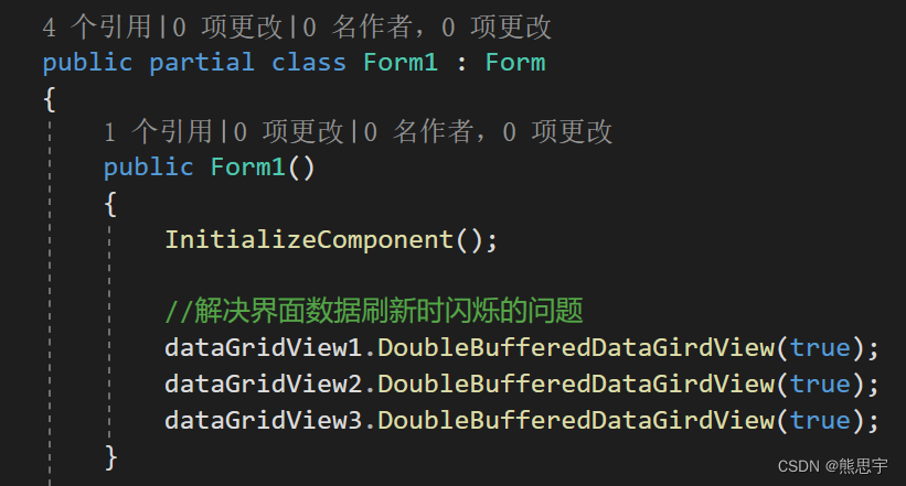 }另外,datagridview 经常刷新数据,会有界面闪烁的问题,下面解决界面闪烁。
