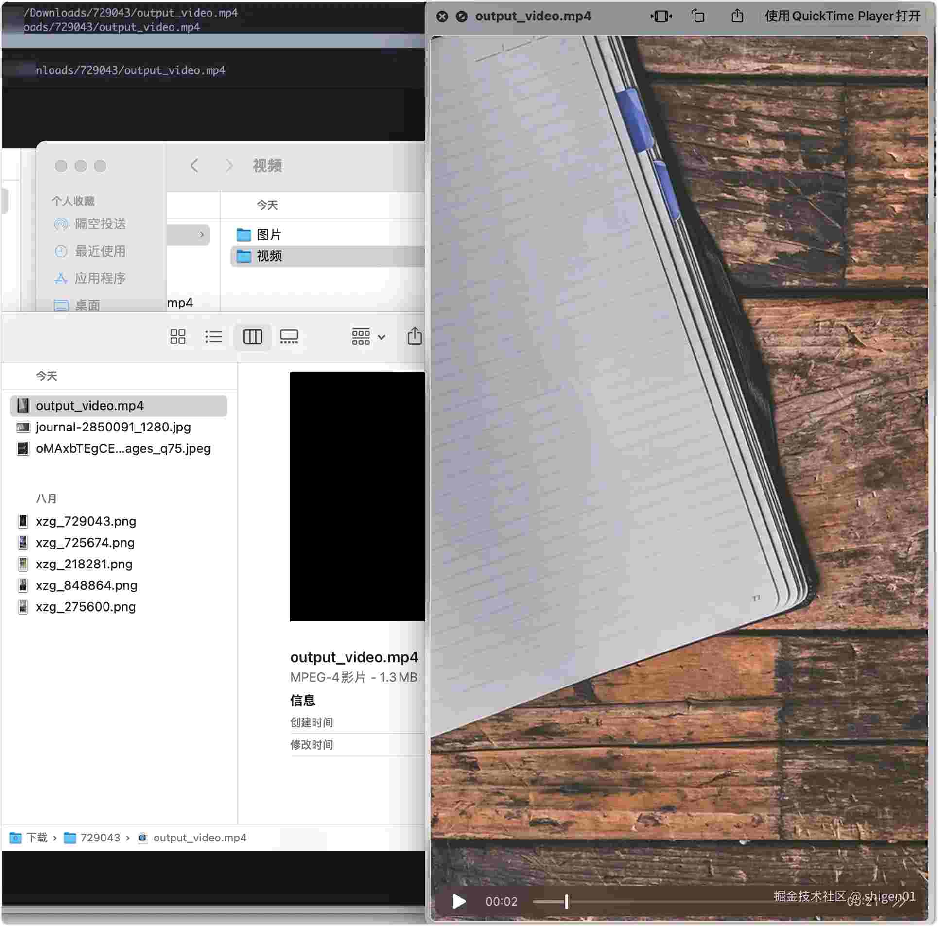 标准的720p h264编码,3&,21s的时长。有一张图是横屏的图,这里生成的视频中也根据高度放大进行了居中裁剪: