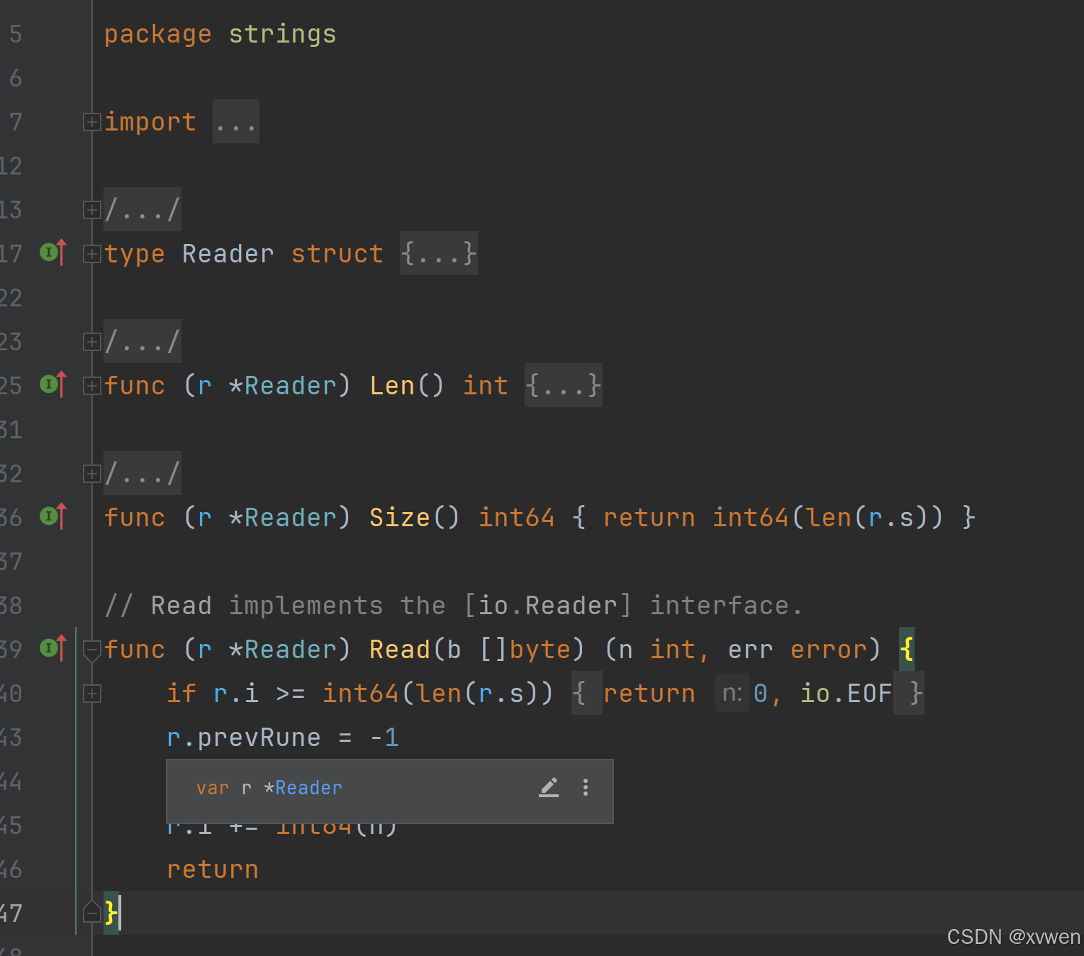 os.file同时实现了 io.reader 和 io.writerstrings.reader实现了 io.readerbufio.reader/writer分别实现了 io.reader 和 io.writerbytes.buffer同时实现了 io.reader 和 io.writerbytes.reader实现了 io.readercompress/gzip.reader/writer分别实现了 io.reader 和 io.writercrypto/cipher.streamreader/streamwriter分别实现了 io.reader 和 io.writercrypto/tls.conn同时实现了 io.reader 和 io.writerencoding/csv.reader/writer分别实现了 io.reader 和 io.writermime/multipart.part实现了 io.readernet/conn分别实现了 io.reader 和 io.writer(conn接口定义了read/write)