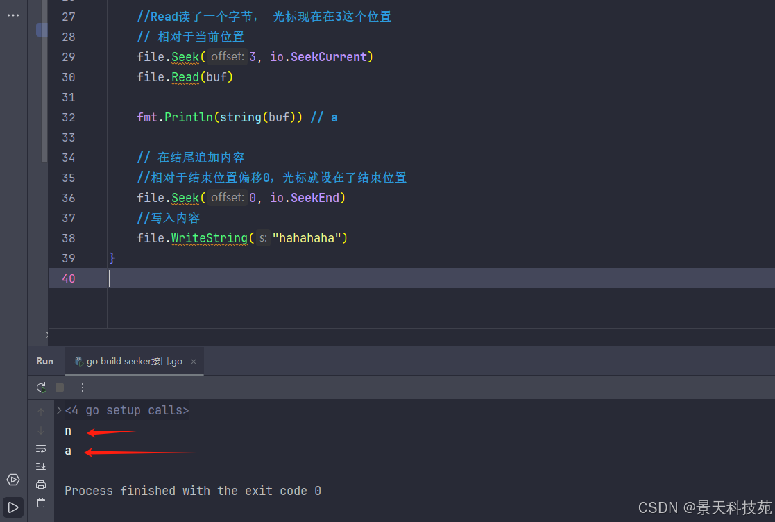 seeker接口表示一个定位器,可以用来定位文件或流的位置。其定义如下: