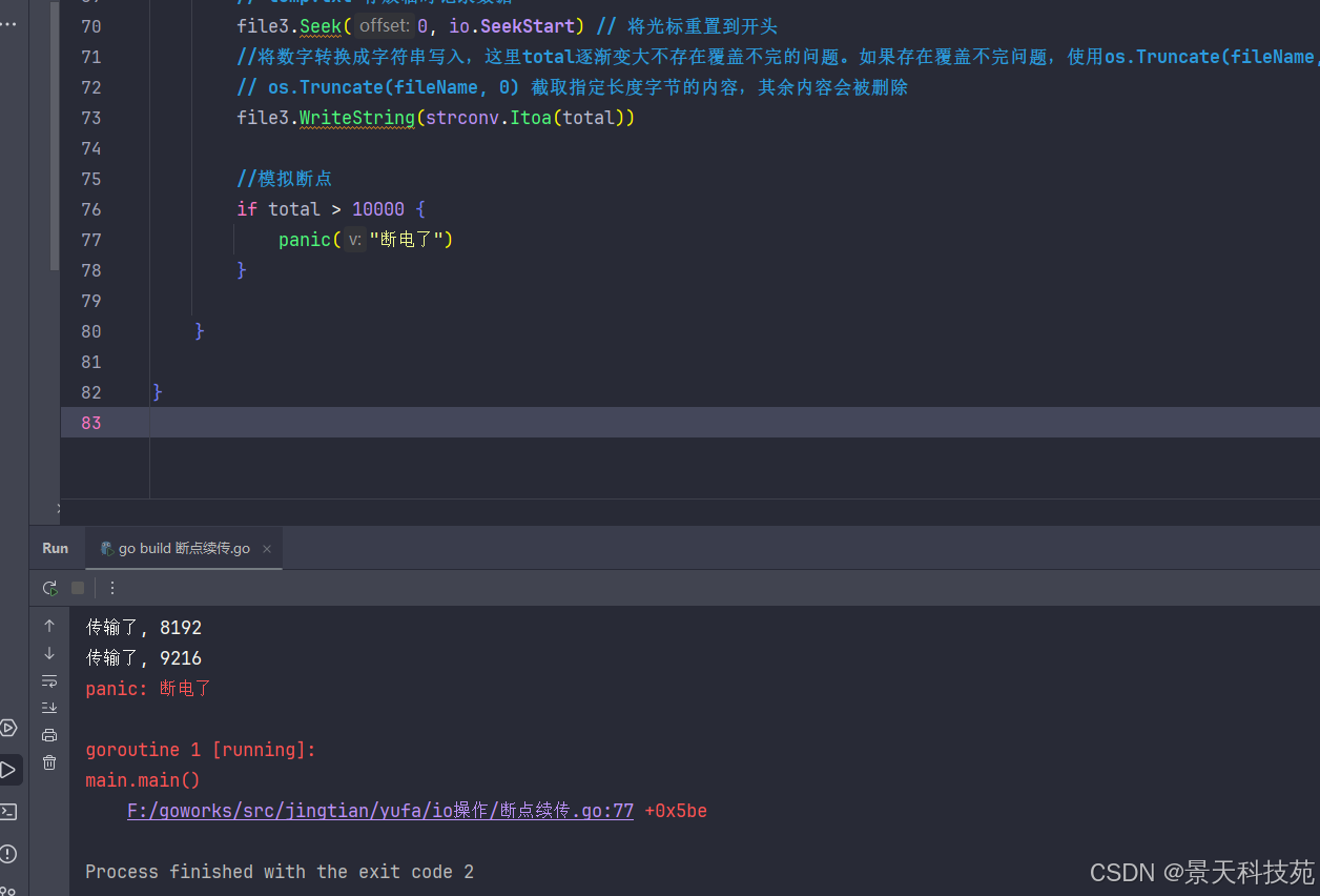 2.创建记录中断位置的临时文件,需要记住上一次传递了多少数据、temp.txt