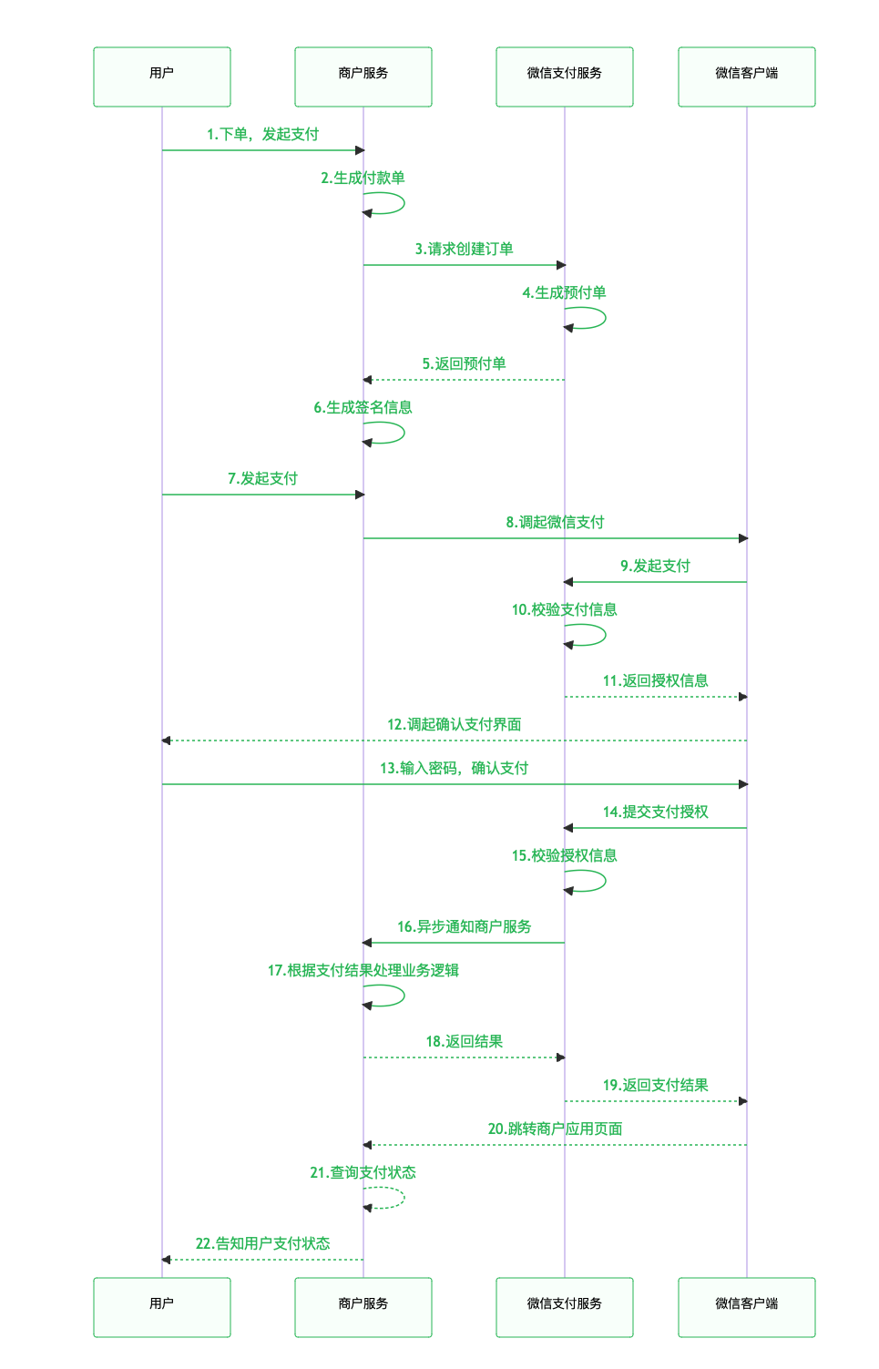 }- app支付跟jsapi支付很像。主要区别在于app与商户服务后台的交互。app会从商户服务后台获取签名信息,根据签名信息,app直接调用微信支付服务下单。