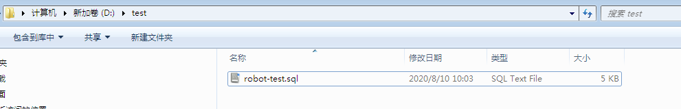 6.查看本地电脑的d:\test\robot-test.sql是否存在,并确定是否备份成功。
