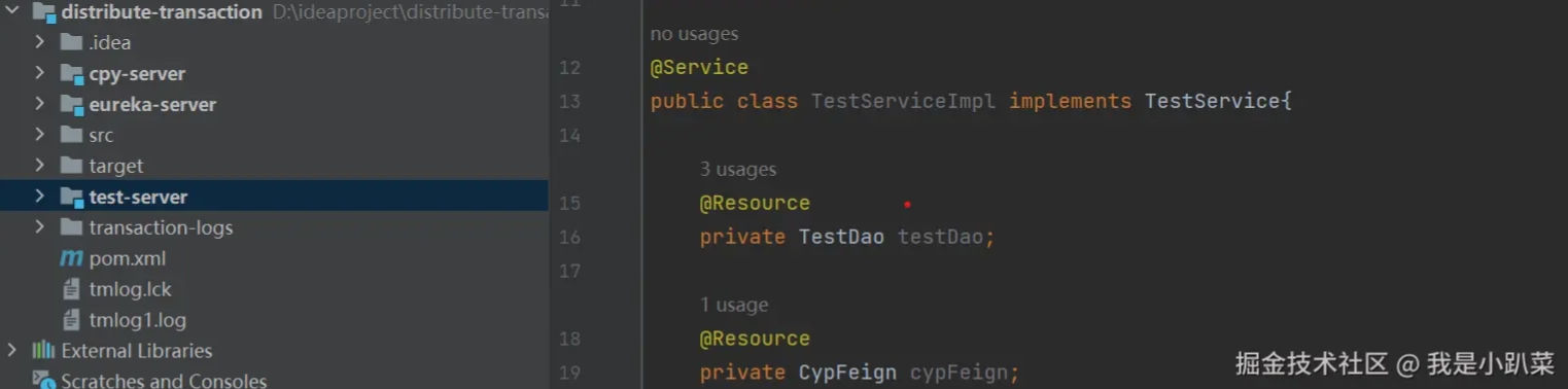 然后在 test-server 和 cpy-server服务的resources目录下创建 hmily.yml 文件,文件内容如下: