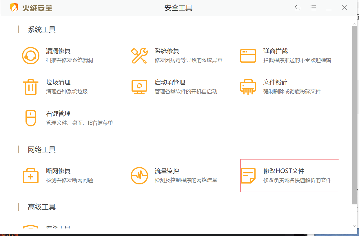 ❤️ 推荐: 如果安装了火绒,可以使用内置安全工具,方便修改。