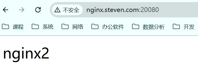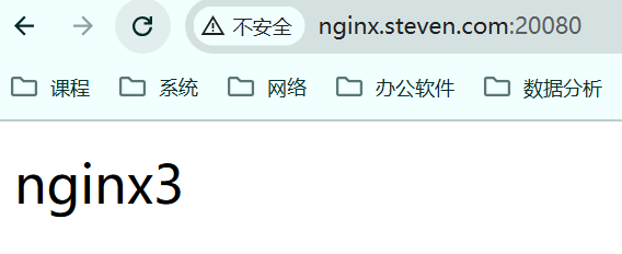 [root@k8s-master1 ingress-nginx]# kubectl exec -it nginx-test-6fc95f9f89-dsqkg -- sh / # echo "nginx1"> /usr/share/nginx/html/index.html / # exit [root@k8s-master1 ingress-nginx]# kubectl exec -it nginx-test-6fc95f9f89-h7khh -- sh / # echo "nginx2"> /usr/share/nginx/html/index.html / # exit [root@k8s-master1 ingress-nginx]# kubectl exec -it nginx-test-6fc95f9f89-z2v6l -- sh / # echo "nginx3"> /usr/share/nginx/html/index.html / # exit