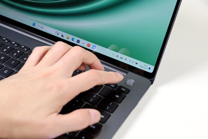 指纹式电源按键位于c面的右上角,独立设计,相对于很多笔记本的电源与键盘区在一起,避免了快速盲打时的误触,造成不必要的麻烦。电源/指纹二合一的设计,可以轻松快捷一键开机登录,减少开机时输入密码的繁琐,而且在公共场合下,指纹的登录方式也更加安全。