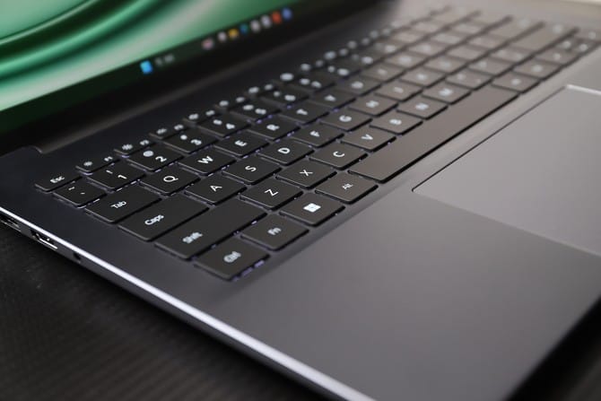 配备的全尺寸键盘,长键程、大间距,打字时不易误触,按键回馈清晰,段落感强,具有很好的打字体验。键盘还拥有 3 档背光调节,满足在不同环境光线下的高效使用,尤其是在夜间工作学习时,背光键盘可以提供清晰的操作,舒适又安心。
