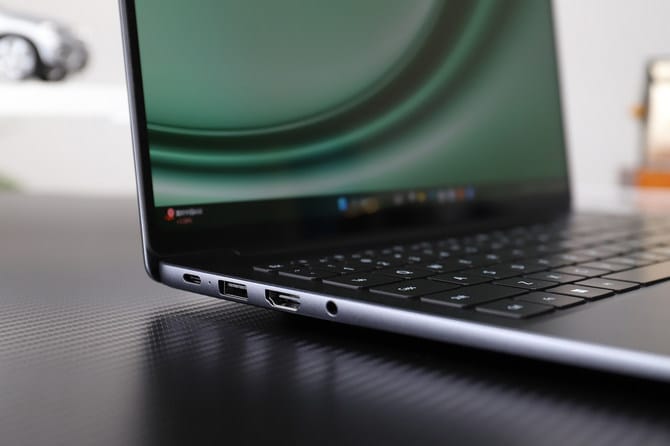 继续来看看hi matebook 14 的接口设计,机身左侧提供了 1个全功能usb-c,既可以用于充电也可以高速传输数据,1个usb 3.2 gen 1,1个hdmi 接口,1个3.5mm 耳机孔。机身右侧还有1个usb 3.2 gen 1接口,丰富的接口,能够支持多种外接设备,满足办公、学习的连接需求。