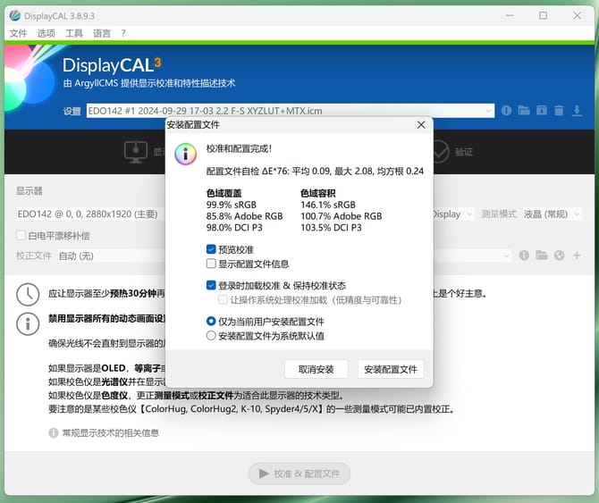 在使用爱色丽 i1 display 校色仪实测屏幕的色域,可以看到色域覆盖99.9% srgb,色域容积146.1% srgb,可以满足创作设计对屏幕色彩的需求,相当优秀了。