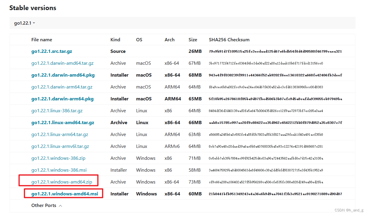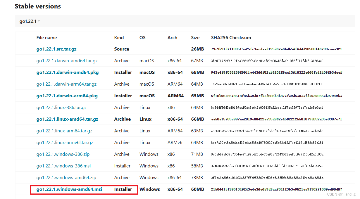 方式一:直接下载安装包。以.msi结尾的文件。例如:
