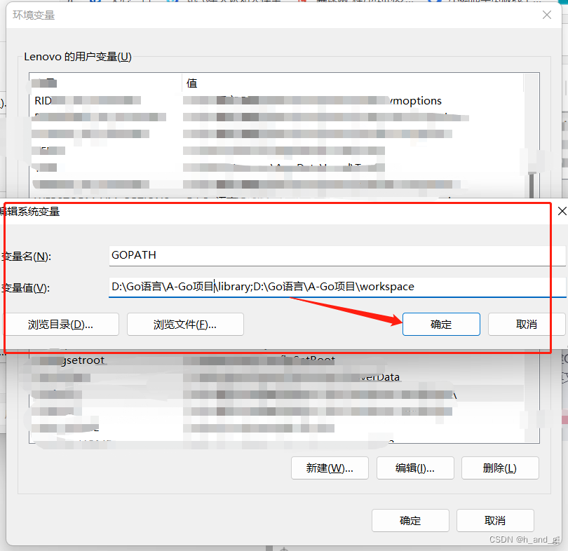 gopath和goroot的配置略有不同,我建议配置两个gopath目录,第一个用于放 go 语言的第三方包,第二个用于放自己的开发代码。我们来新建gopath。点击系统变量下的新建,在变量名一栏输入gopath,在变量值一栏输入任意两个目录,中间用英文分号隔开。