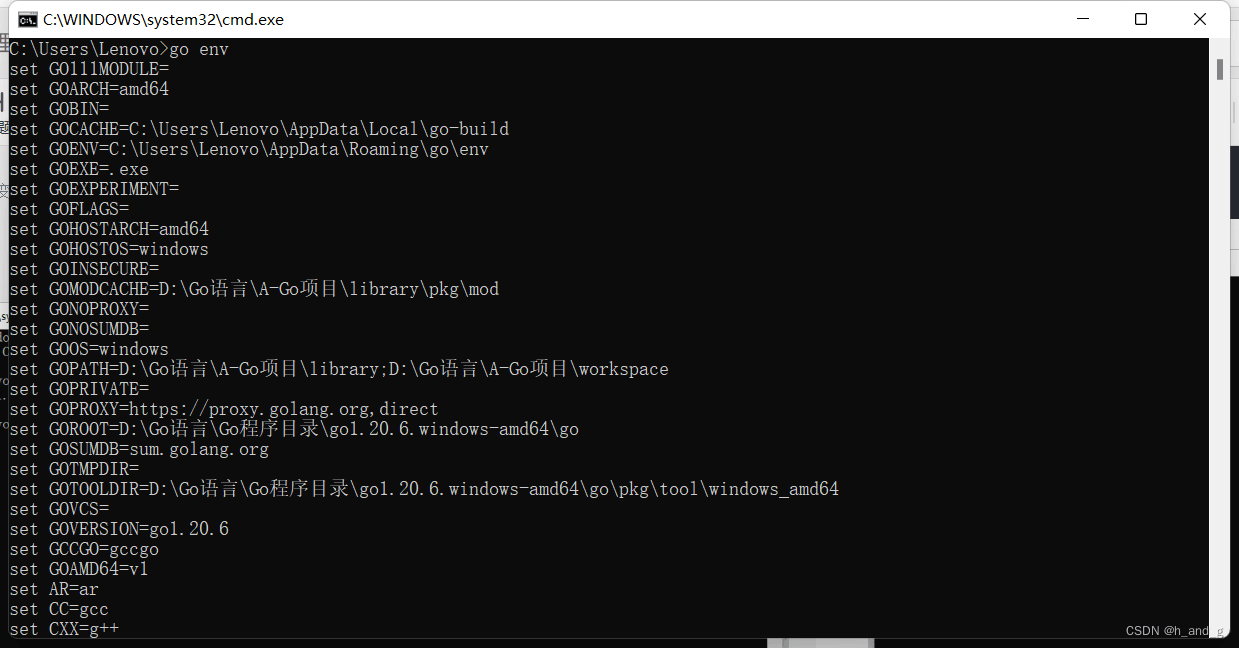 windows+r 输入 cmd 打开终端,输入go version,如果输出如下图所示,则安装成功。