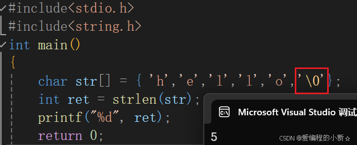 此时我们在数组的末尾加上 \0 这时候strlen函数计算的结果就是 \0前面的字符个数。