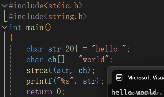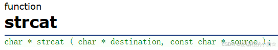 strcat函数是将字符串source连接到destination的末尾(包括终止的空字符 \0)