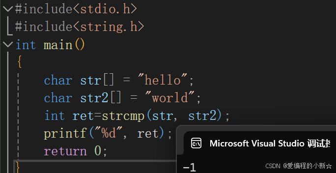 - 如果第⼀个字符串⼩于第⼆个字符串,则返回⼩于0的数字