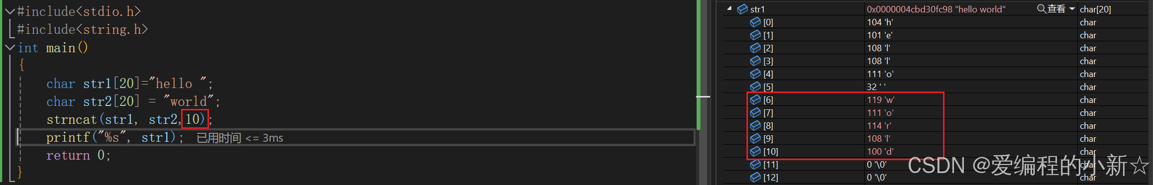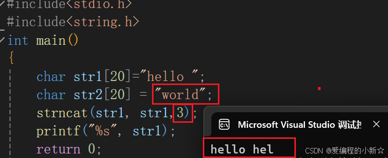 对比strcat函数,strncat函数在参数部分也多了一个(size_t num)追加的字节个数