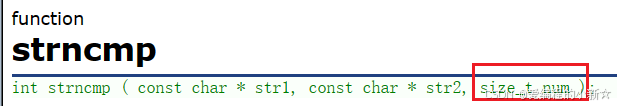 对比strcmp函数,strncmp函数在参数部分也多了一个(size_t num)比较的字节个数