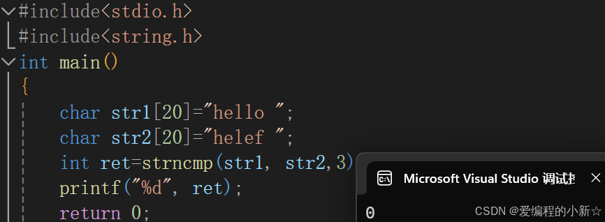 此时只是比较的str1和str2中的前3个字符,前三个字符相等所以返回值为0