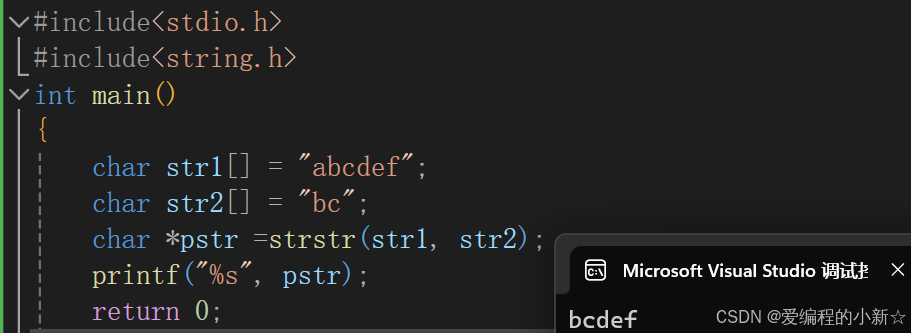 strstr函数的作用是在一个字符串(str1)中查找第一次出现的子字符串(str2),并返回指向该子字符串的指针,如果没有找到子字符串,则返回null(空指针)
