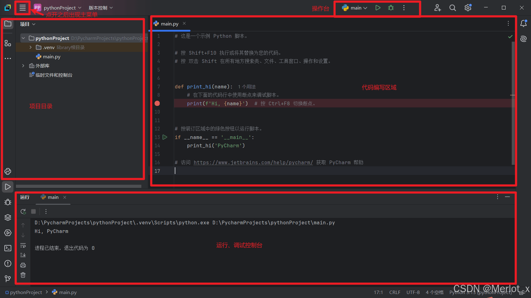 代码行数处的红色按钮是断点,主要调试时使用,在调试时程序会停在断点处等待下一步指令,在实际的开发过程中调试是必不可少的