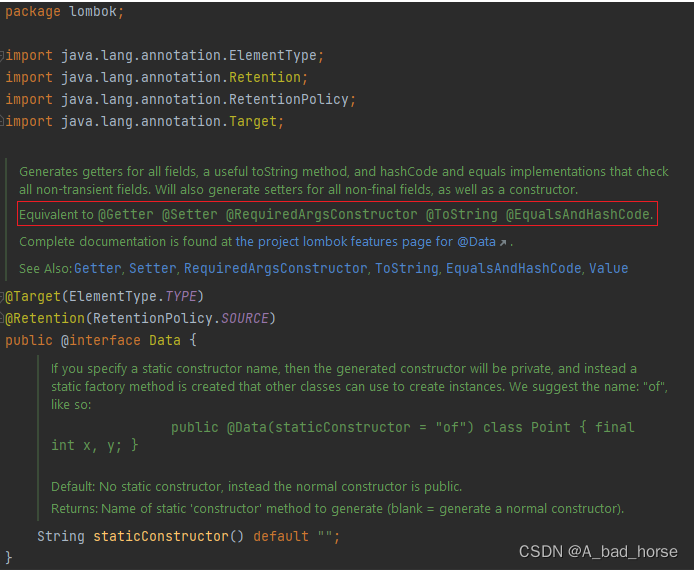 lombok 使用@data时会重写tostring(),查看@data源代码;