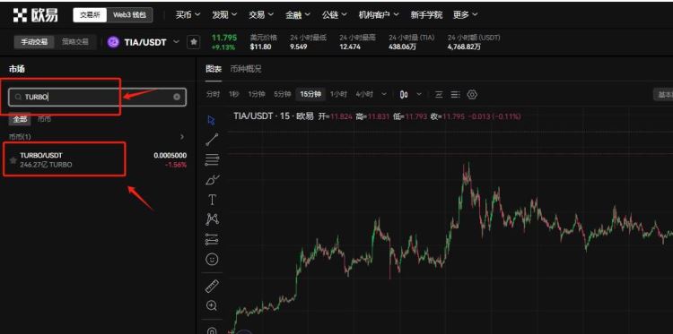 购买turbo币一般都是在上线的交易所内购买,根据当前资料显示,目前turbo币上线交易所有欧易、火币、芝麻开门、热币等14家,下文是在欧易交易所购买turbo币的教程: