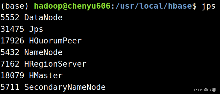 cd /usr/local/hadoop ./sbin/start-dfs.sh cd /usr/local/hbase bin/start-hbase.sh jps