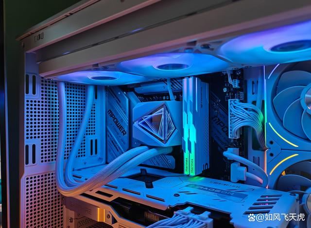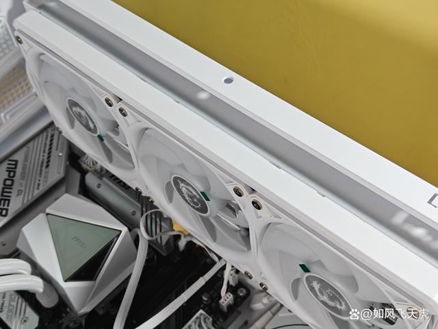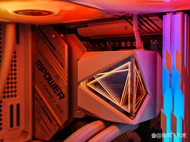 当然,风扇也是具有rgb灯效的,同冷头的色彩统一控制,交相辉映,美不胜收。