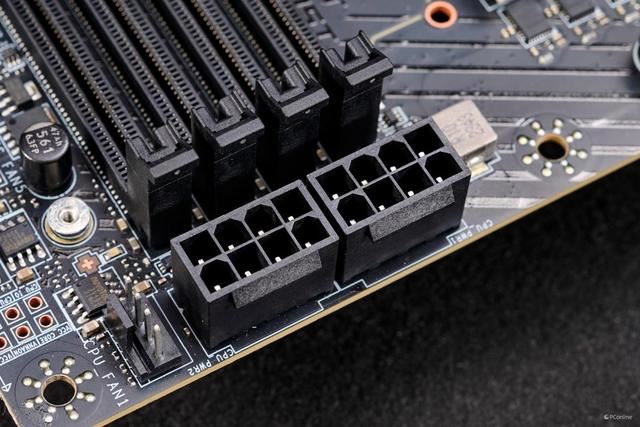 双8pin供电,插口位置来到内存插槽上方,方便大家安装