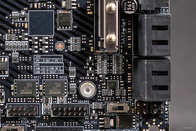 与之前我们评测过的mpg x870e carbon wifi一样,io接口处的六个usb与按钮采用独立的模块化pcb