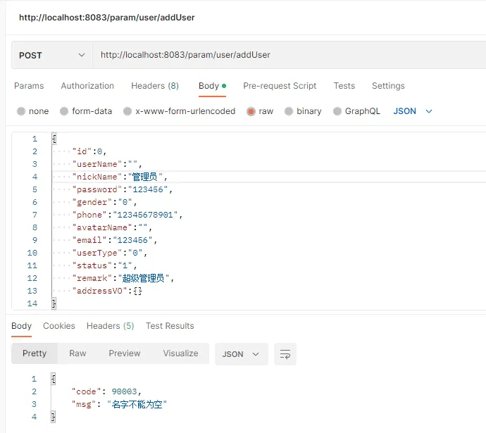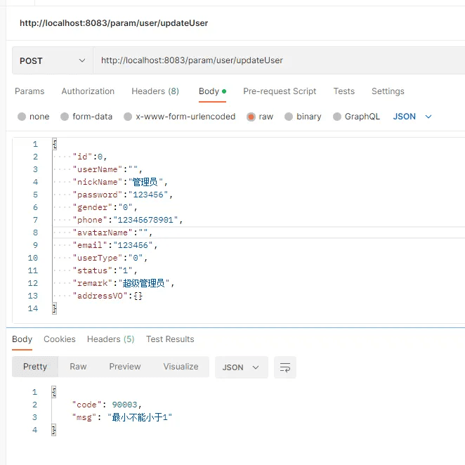 id写成0,username还是为空,只是报了id不能小于1