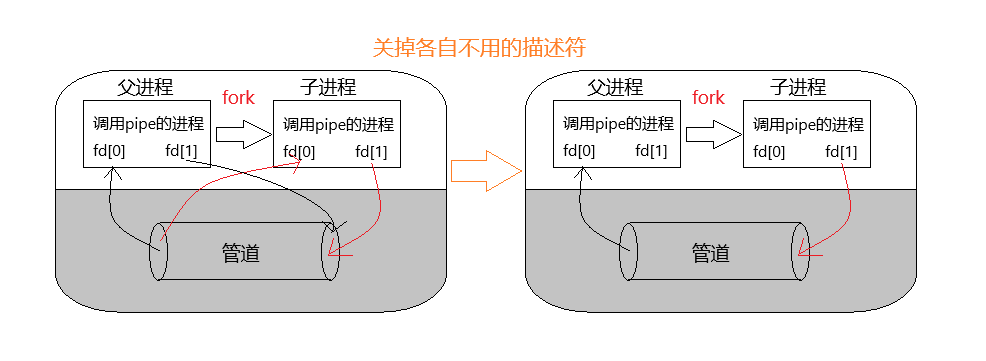 匿名管道是一个半双工的通信机制,也就是说,数据只能沿一个方向流动,为了实现半双工的通信方式,父子进程需要关闭各种不需要的文件描述符。
