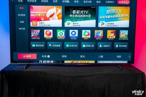 还有一个容易忽略的要点——海信e7n此次支持了全场景4k ui。以前的4k电视在视频内容播放和系统界面的观感是割裂的,造成这一情况的根本原因就在于二者的分辨率不匹配。之前的电视ui界面多为1080p,而当采用4k ui之后,无论是在电视首页的瀑布流信息界面,还是系统设置等内部界面,或者是第三方应用界面都能以4k分辨率呈现,都能大大减轻此前看1080p ui的“大果粒”感,也使得电视从界面ui到视频播放的统一观感,更加清晰、细腻。