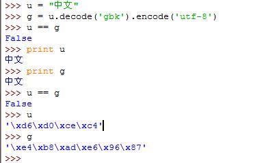 # encoding:utf-8 s = u"中文" print s print repr(s)