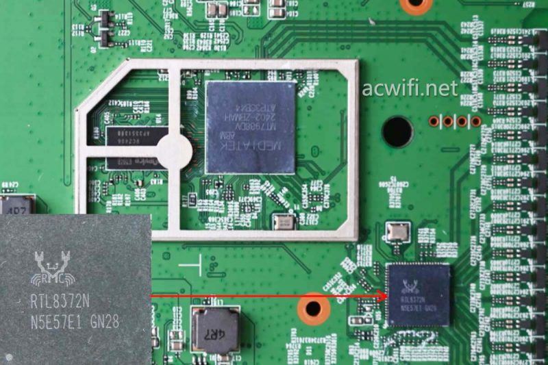 mt7988d用usxgmii接着一颗2.5g交换芯片:rtl8372n,它本身有四个2.5g phy,加上mt988d的一个,一共就有了五个2.5g网口。