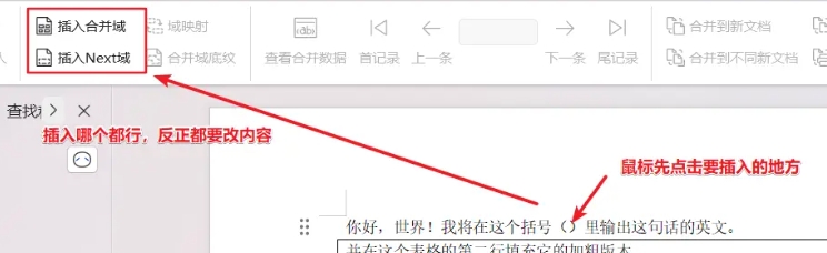 docx 文档可以用 office 打开,也可以用 wps,这边截图使用的是 wps,因为里面邮件合并部分 “插入合并域/next域” 自带的小书名号非常独特,这个符号的正式名称是角引号,主要用于法语、俄语、西班牙语等欧洲语言中,中文语境里使用较少,很适合作为后面遍历行段内容替换字符串时的标识符。