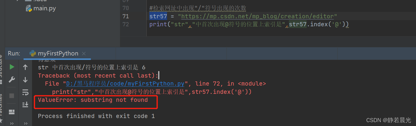 注意:使用index()方法,当指定的字符串不存在时会抛出异常。