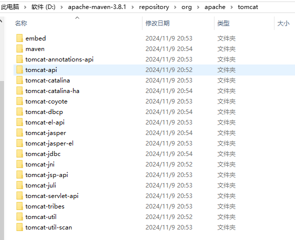 需要多等待一会儿,因为tomcat8有很多相关依赖,这是下载好的依赖: